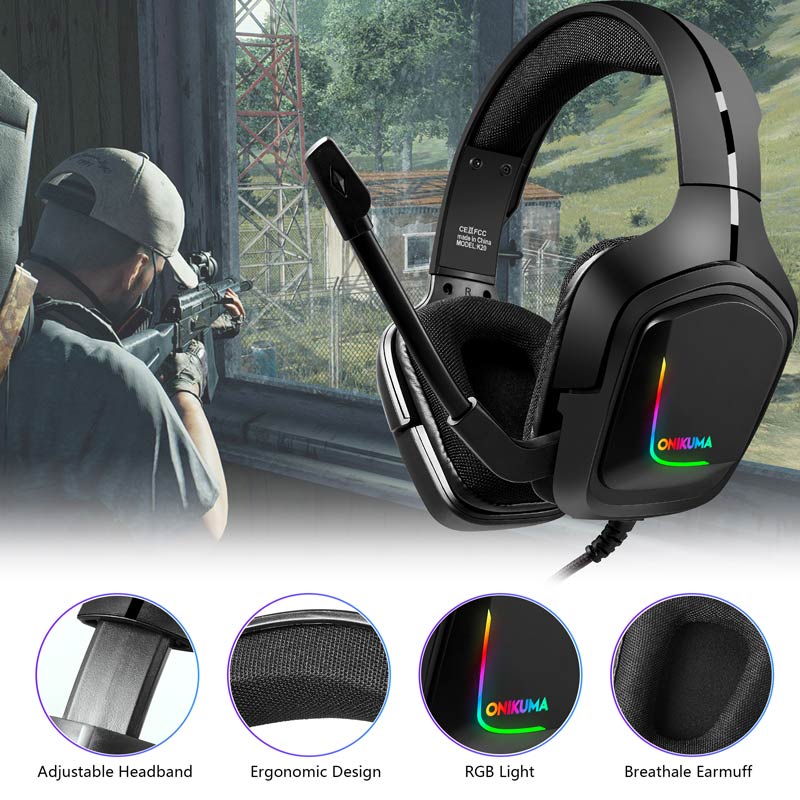 یکی از جذاب ترین بخش های هدفون گیمینگ بهره مندی از نورپردازی RGB می باشد. نورپردازی RGB این هدفون به یک نوار L شکل و لوگو Onikuma محدود شده و به هدفون K20 ظاهری مدرن می بخشد تا زیبایی هرچه بیشتر و توجه به طراحی را در این هدفون به رخ بکشد. میکروفون این محصول نیز به صورت متحرک طراحی شده و با قابلیت چرخش ۱۲۰ درجه می تواند در بهترین زاویه مقابل دهان کاربر فرار گرفته و مکالمه ای رسا را رقم بزند. وجود قابلیت حذف نویز در این میکروفون نیز نوید حذف نویز محیط را در هنگام مکالمه به کاربر می دهد. در امتداد سیم هدست مخصوص بازی نیز کلید فیزیکی جهت مدیریت میزان صدا قرار گرفته تا کاربران در سریع ترین زمان ممکن به آن دسترسی داشته باشند.