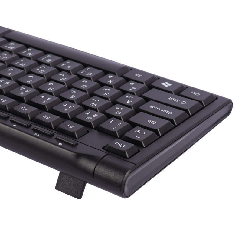 کیبورد دارای کلید فیزیکی حک شده با حروف فارسی و امکان تنظیم ارتفاع کیبورد از طریق پایه تعبیه شده در زیر بدنه