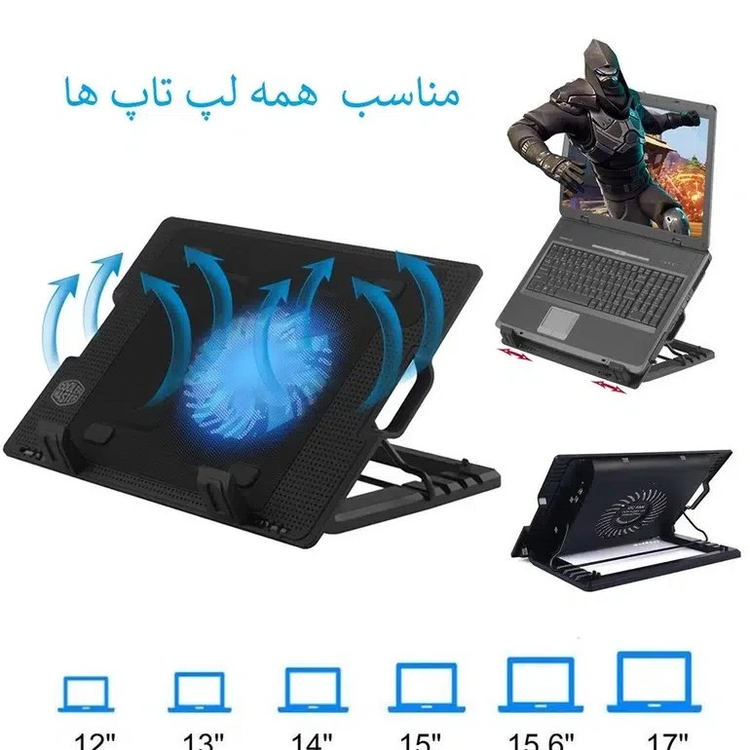 پایه خنک کننده تنظیم ارتفاع دار لپ تاپ مدل 738G محصولی زیبا از برند با کیفیت یوسیتک . این کالا دارای 5 حالت تنظیم ارتفاع لپ تاپ و همچنین دارای هاب USB و کلید روشن و خاموش کردن میباشد. توری روی کالا که در تماس با لپ تاپ میباشد از جنس فلز طراحی شده که خنکی بیشتر به لپ تاپ برسد همچنین پایه نگهدارنده محصول نیست برای مقاومت دربرابر لپ تاپ های سنگین فلزی طراحی شده است . فن محصول در عین بیصدا بودن دارای قدرت بالا و همچنین دارای چراغ های rgb روشن شونده و تغیر رنگ دهنده خودکار میباشند.