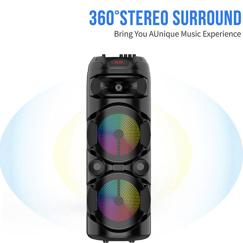 برخوردار از 2 درایو 8 اینچی با توان خروجی 40 وات (2*20W)، دارای یک عدد درگاه USB و یک عدد درگاه TF جهت پخش فایل های ذخیره شده