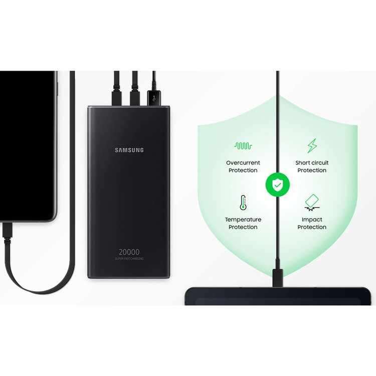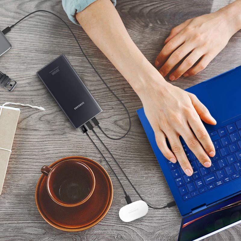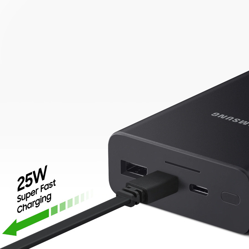 شارژر همراه EB-P5300 محصولی از برند سامسونگ با بدنه دارای روکش فلزی، مقاومت مطلوبی در برابر ضربه و گرما به بازار ارائه شده است. این محصول به سه پورت خروجی شامل ۱ عدد پورت Type-C (مشترک)، یک عدد درگاه USB، یک پورت تایپ سی و یک عدد درگاه Type-C (مشترک) به عنوان پورت ورودی مجهز شده است. ظرفیت باتری لیتیومی پاوربانک ۲۰۰۰۰ میلی آمپر و توان خروجی کلی معادل ۲۵ وات اعلام شده است. پشتیبانی EB-P5300 از قابلیت سوپر شارژ سامسونگ، فناوری شارژ سریع QC 2.0 و شارژ هوشمند Power Delivery موجب شده تا کاربران قابلیت این را داشته باشند تا به صورت همزمان به شارژ گوشی موبایل و سایر دستگاه های هوشمند خود پردازند.